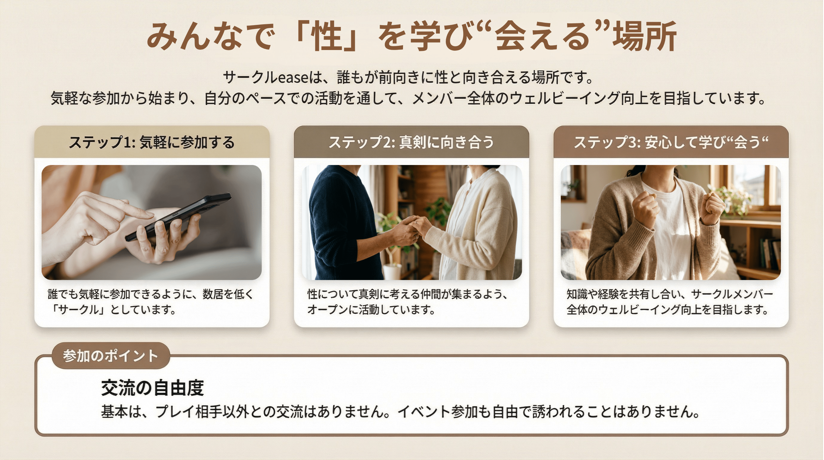 ※セックスサークルeaseは、「性」に真剣に向き合う人たちが集う団体です。