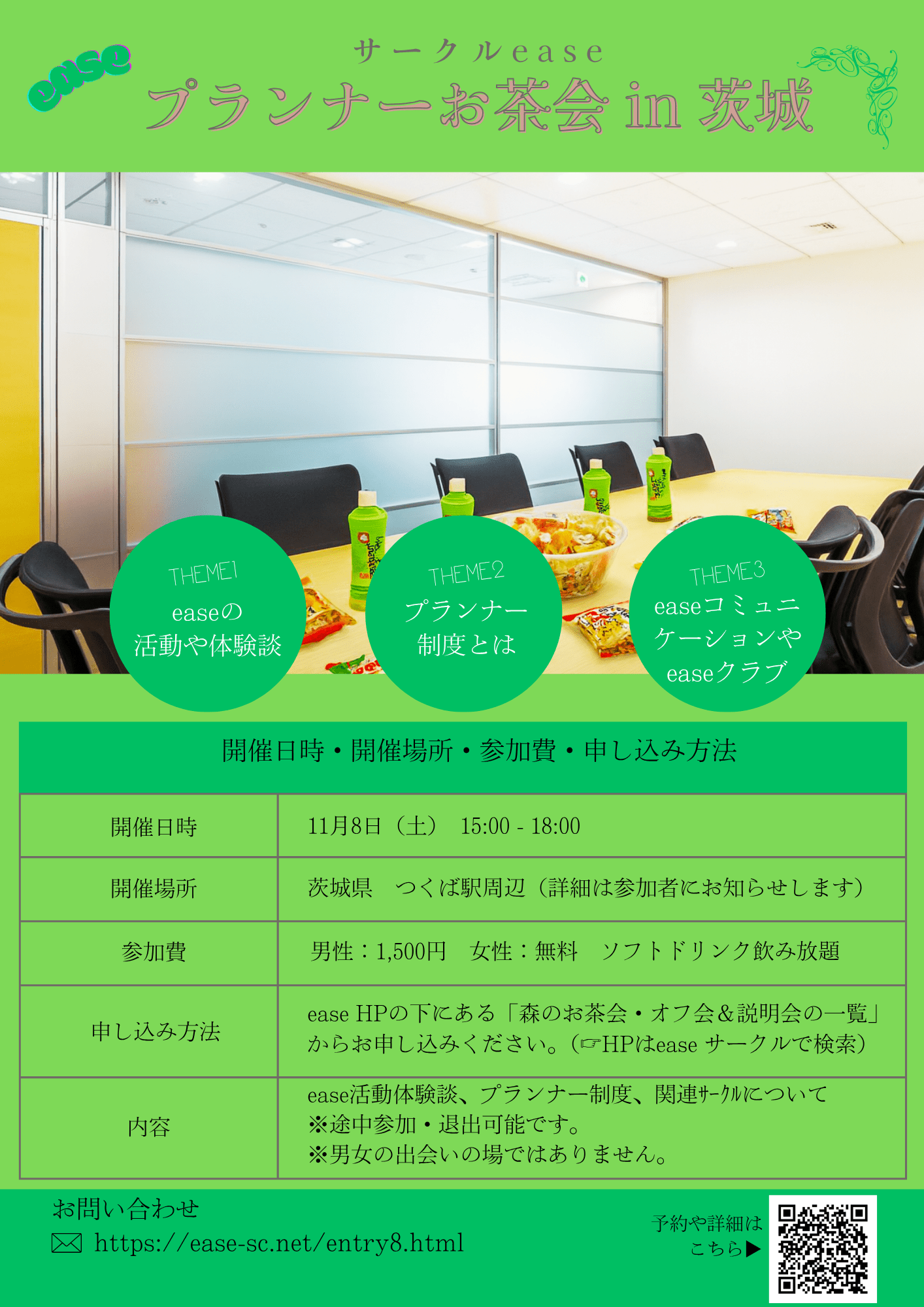 参加費:男性/1,500円 女性/無料